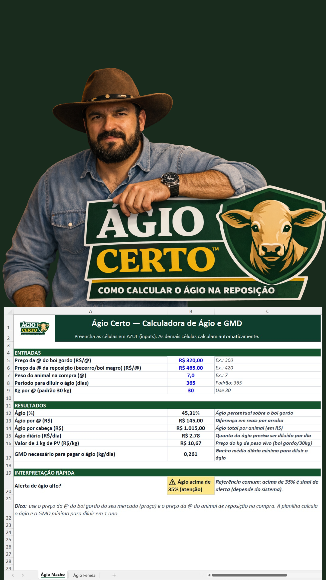 Com o Ágio Certo, você aprende a calcular, interpretar e comparar a reposição do jeito certo, evitando erros que podem comprometer seu resultado.
